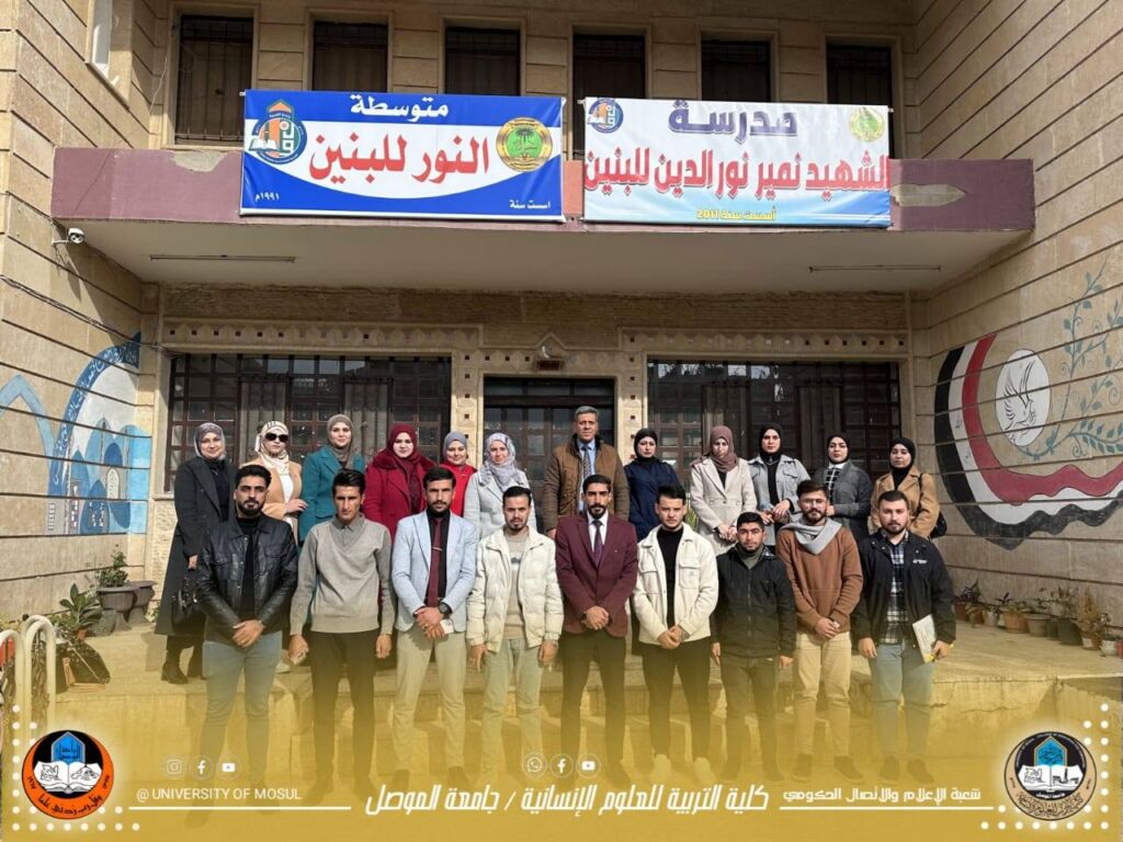رعاية السيد رئيس جامعة الموصل الأستاذ الدكتور وحيد محمود الإبراهيمي المحترم، وبإشراف مباشر من السيد عميد كلية التربية للعلوم الإنسانية الأستاذ الدكتور سعد رمضان محمد الجبوري المحترم، وضمن خطة الجامعة للانفتاح على المؤسسات المجتمعية، نظم قسم العلوم التربوية والنفسية بالتعاون مع قسم الدراسات والتخطيط (وحدة التنمية المستدامة)، زيارة علمية ميدانية إلى “دار التراث” في مدينة الموصل القديمة.