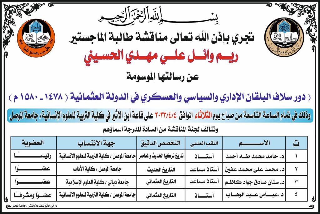 برعاية السيد رئيس جامعة الموصل الموصل قصي كمال الدين الدين المحترم