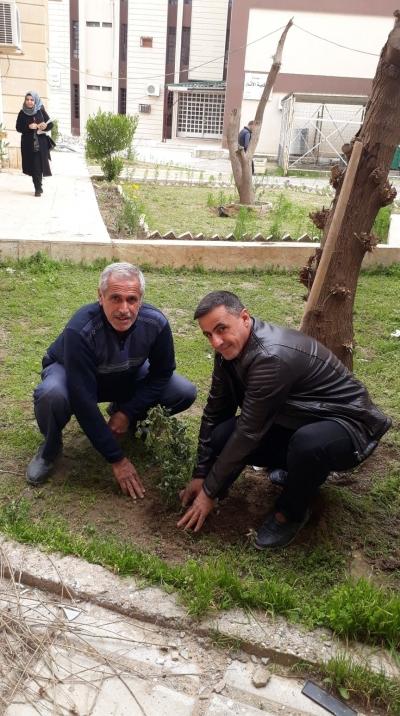 عمادة كلية التربية للعلوم الانسانية تقوم بحمالات تشجير واسعة حول مبنى العمادة واقسامها