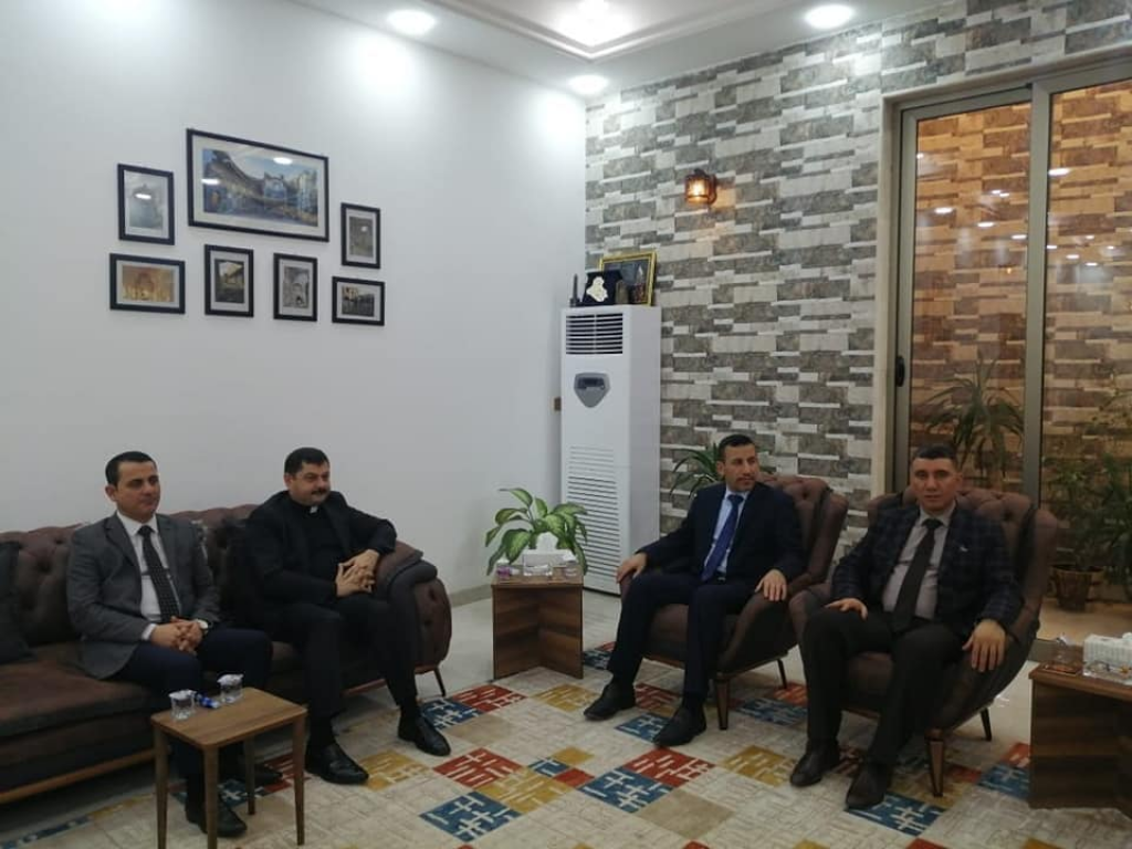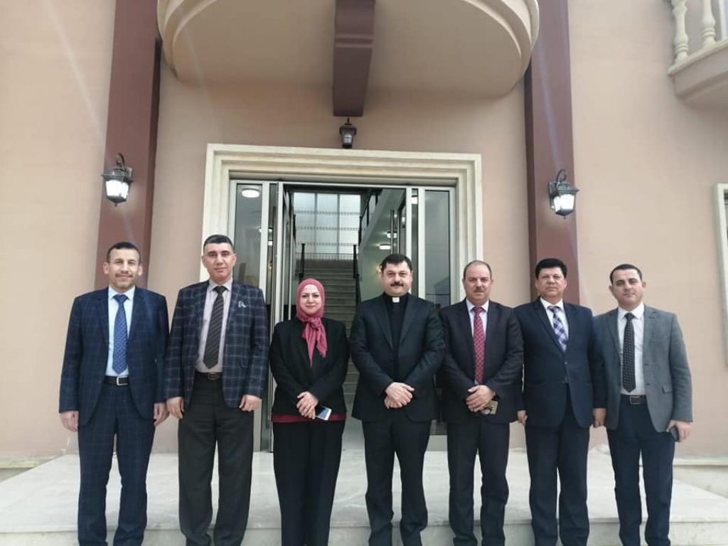(عمداء الكليات أعضاء مجلس جامعة الموصل في ضيافة الأب رائد عادل راعي كنيسة البشارة في الموصل)انطلاقاً من رسالة جامعة الموصل