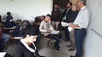 عميد كلية التربية للعلوم الانسانية الدكتور ليث حسن عمر والسيد رئيس قسم التاريخ مسؤو الموقع البديل عبد الستار اسماعيل يتفقدون القاعات الامتحانية في الموقع البديل دهوك يوم الخميس الموافق 24/5/2018