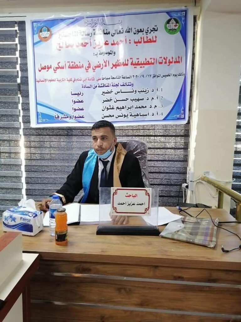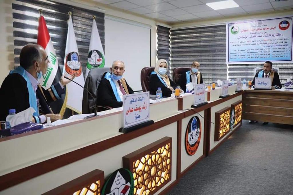 حيث ترأس لجنة المناقشة الأستاذ الدكتور هشام محمد عبد الله وعضوية كل من الأستاذ الدكتور أرشد يوسف عباس الأستاذ المساعد الدكتور سحر بيسان حسين والأستاذ المساعد الدكتور محمد جاسم جبارة عضوا ومشرفا