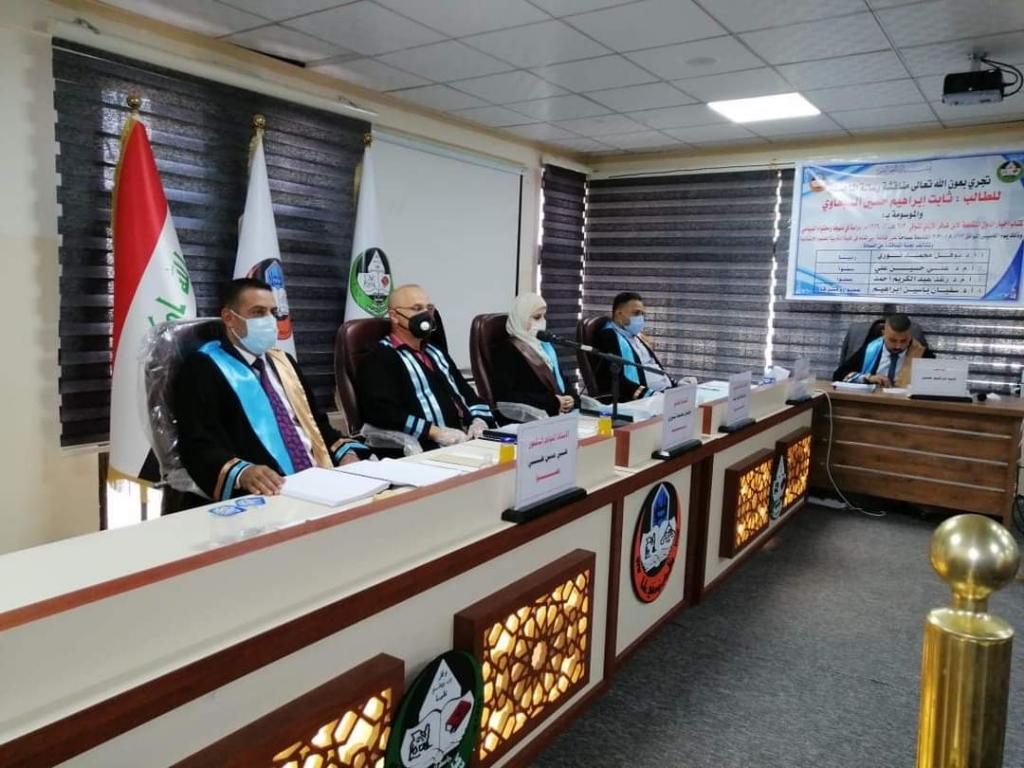 جرت صباح يوم الخميس الموافق ١٣ / ٨ / ٢٠٢٠ وعلى قاعة ابي تمام في الكلية مناقشة رسالة الماجستير والموسومة
