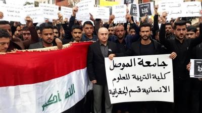 مسيرة حداد تضامنية في كلية التربية للعلوم الانسانية / جامعة الموصل مع عوائل الشهداء الذين قضوا في حادثة الغرق في نهر دجلة