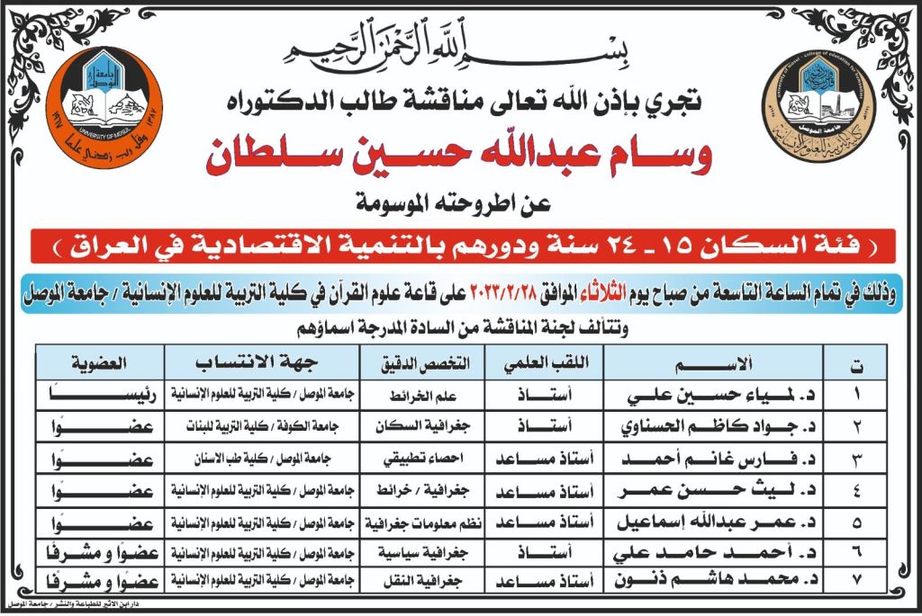 السيد عميد كلية التربية للعلوم الإنسانية الاستاذ الدكتور حازم ذنون إسماعيل السبعاوي المحترم