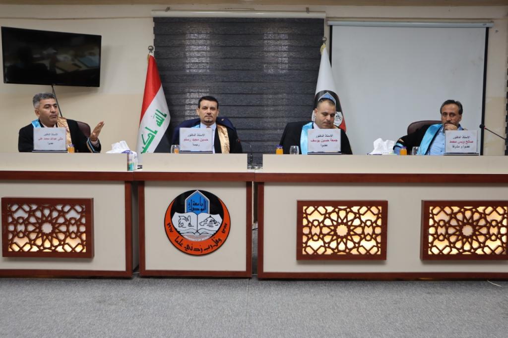 وعضوية كل من الأستاذ الدكتور جمعة حسين يوسف من جامعة تكريت ، والأستاذ الدكتور مثنى عبد الله محمد علي من جامعة الموصل وبإشراف وعضويّة الأستاذ الدكتور صالح ويّس محمد.