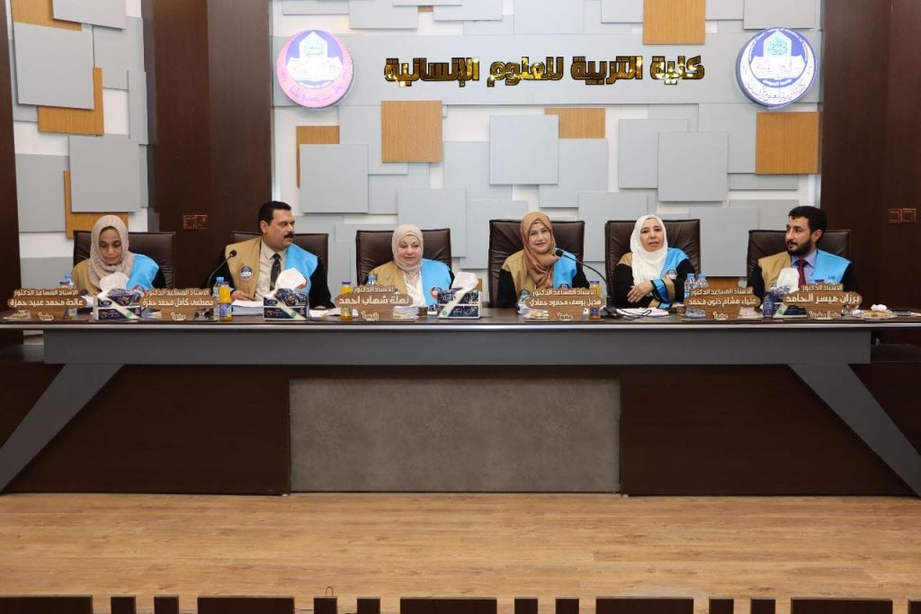 مناقشة رسالة ماجستير بعنوان: تقييم الكفاءة اللغوية الاجتماعية لطلبة الجامعة الدارسين للغة الانكليزية بوصفها لغة اجنبية