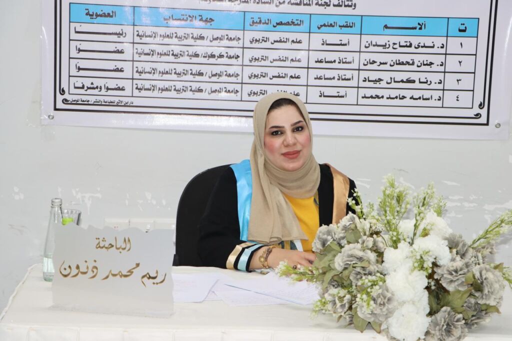 ناقشت كلية التربية للعلوم الانسانية في جامعة الموصل رسالة ماجستير عن (مهارة الانصات وعلاقتها بالابداع الانفعالي لدى طلبة جامعة الموصل) يوم الاحد 1/9/2024، حضر جانباً منها الأستاذ الدكتور حازم ذنون إسماعيل عميد الكلية ورئيس القسم الدكتور ياسر محفوظ الدليمي وعدد من تدريسي الكلية.