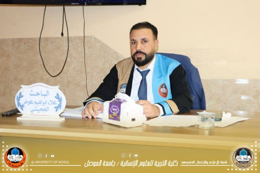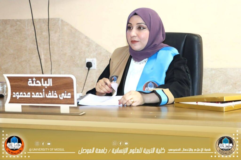 ترأس لجنة المناقشة الاستاذ الدكتور لمياء حسين علي / كلية التربية للعلوم الانسانية / جامعة الموصل ، وعضوية كل من : الاستاذ المساعد الدكتور سرى بدر حسين / كلية التربية للعلوم الانسانية / جامعة الموصل ، والاستاذ المساعد الدكتورة شيماء ثامر جواد / الجامعة العراقية / رئاسة الجامعة وعضوية وإشراف الاستاذ الدكتور صهيب حسن خضر / كلية التربية للعلوم الانسانية / جامعة الموصل .