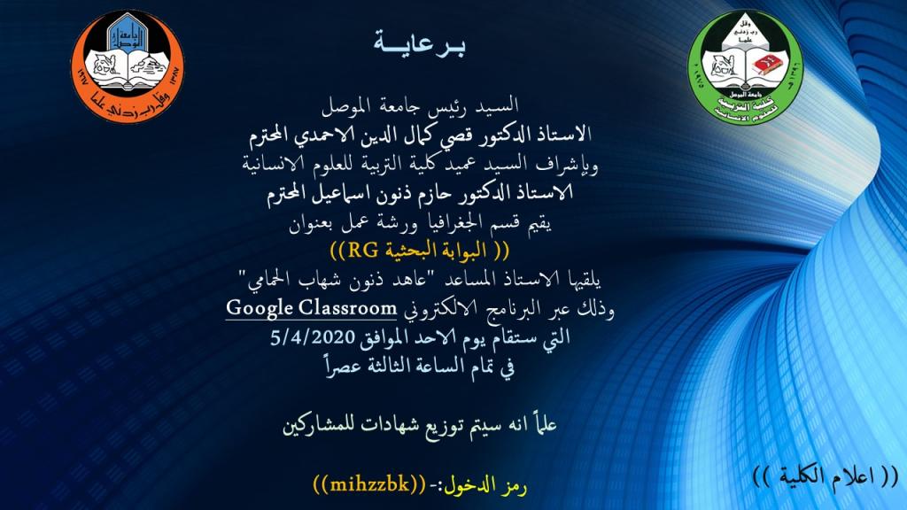 وذلك عبر البرنامج الالكتروني Google Classroom