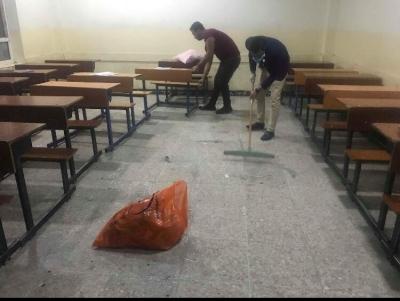 شارك طلبة اقسام التاريخ والجغرافية والعلوم التربوية والنفسية في الموقع المساند لكلية التربية للعلوم الانسانية جامعة الموصل في دهوك بحملة تنظيف الموقع من قاعات دراسية وممرات وغرف الاساتذة والموظفين وباشراف الدكتور عبد الستار اسماعيل رئيس قسم التاريخ يوم الخميس الموافق 12/4/2018
