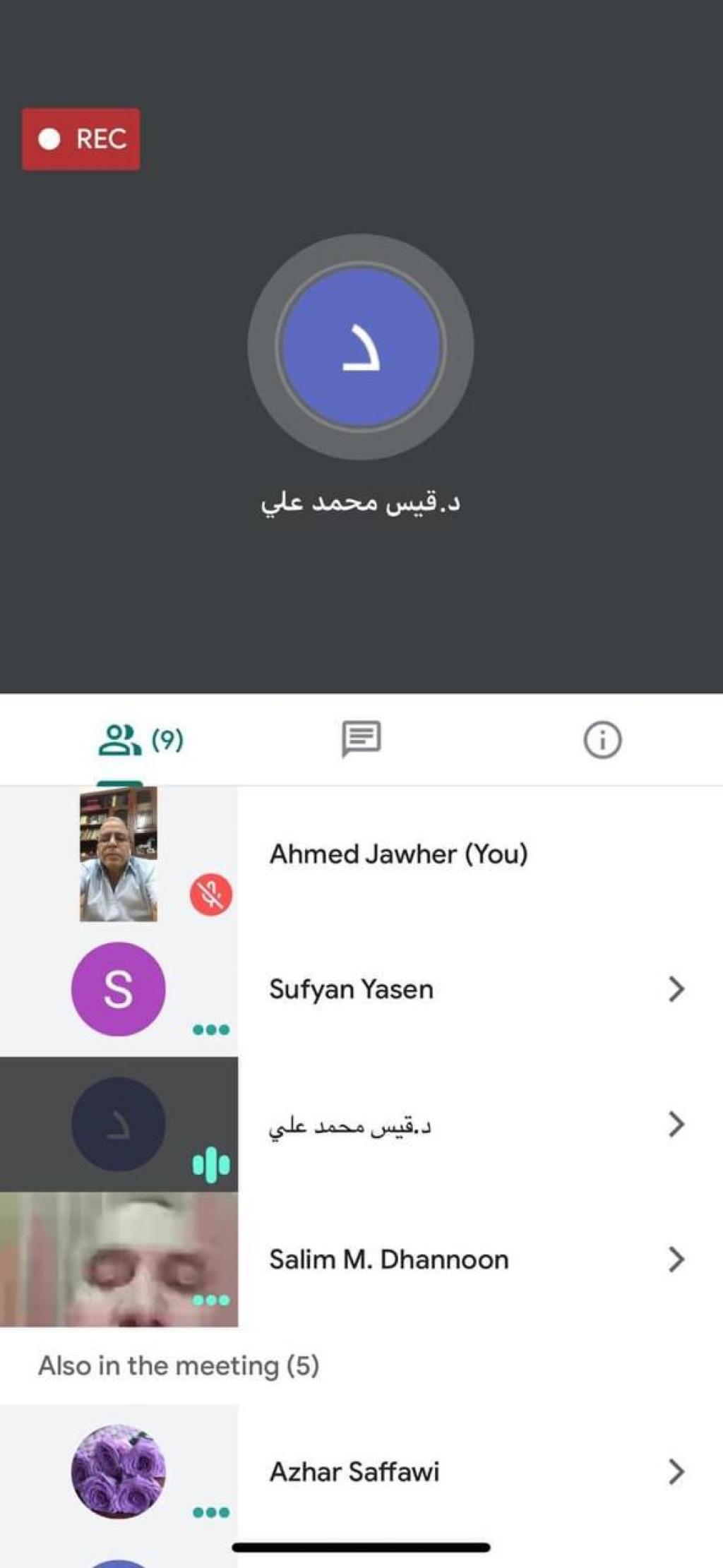 عقد مجلس كلية التربية للعلوم الانسانية جلسته الثامنة عشرة في الساعة التاسعة من مساء يوم الخميس الموافق السادس عشر من شهر نيسان 2020 برئاسة الأستاذ الدكتور حازم ذنون اسماعيل عميد الكلية ومشاركة السادة أعضاء المجلس