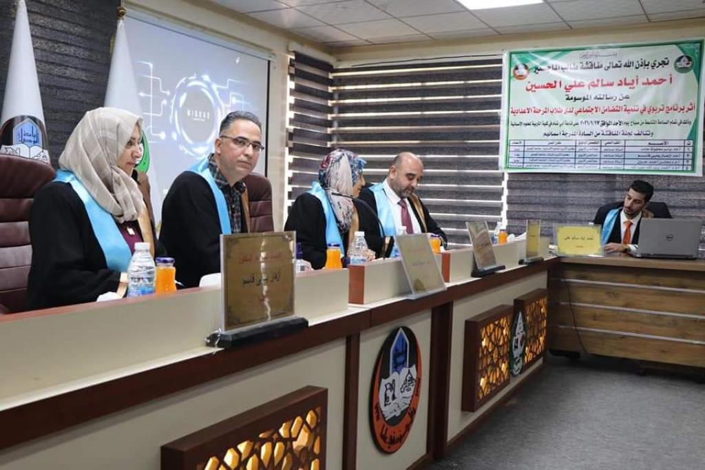 مناقشة رسالة الماجستير الموسومة (( أثر برنامج تربوي في تنمية التضامن الاجتماعي لدى طلاب المرحلة الاعدادية ))
