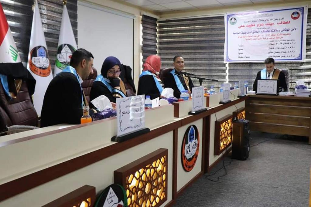 حيث ترأس لجنة المناقشة الأستاذ الدكتور ندى فتاح زيدان وعضوية كل من الأستاذ المساعد الدكتور تنهيد عادل فاضل الأستاذ المساعد الدكتور غزوان رمضان صالح الأستاذ المساعد الدكتور ياسر محفوظ حامد عضوا ومشرفا .
