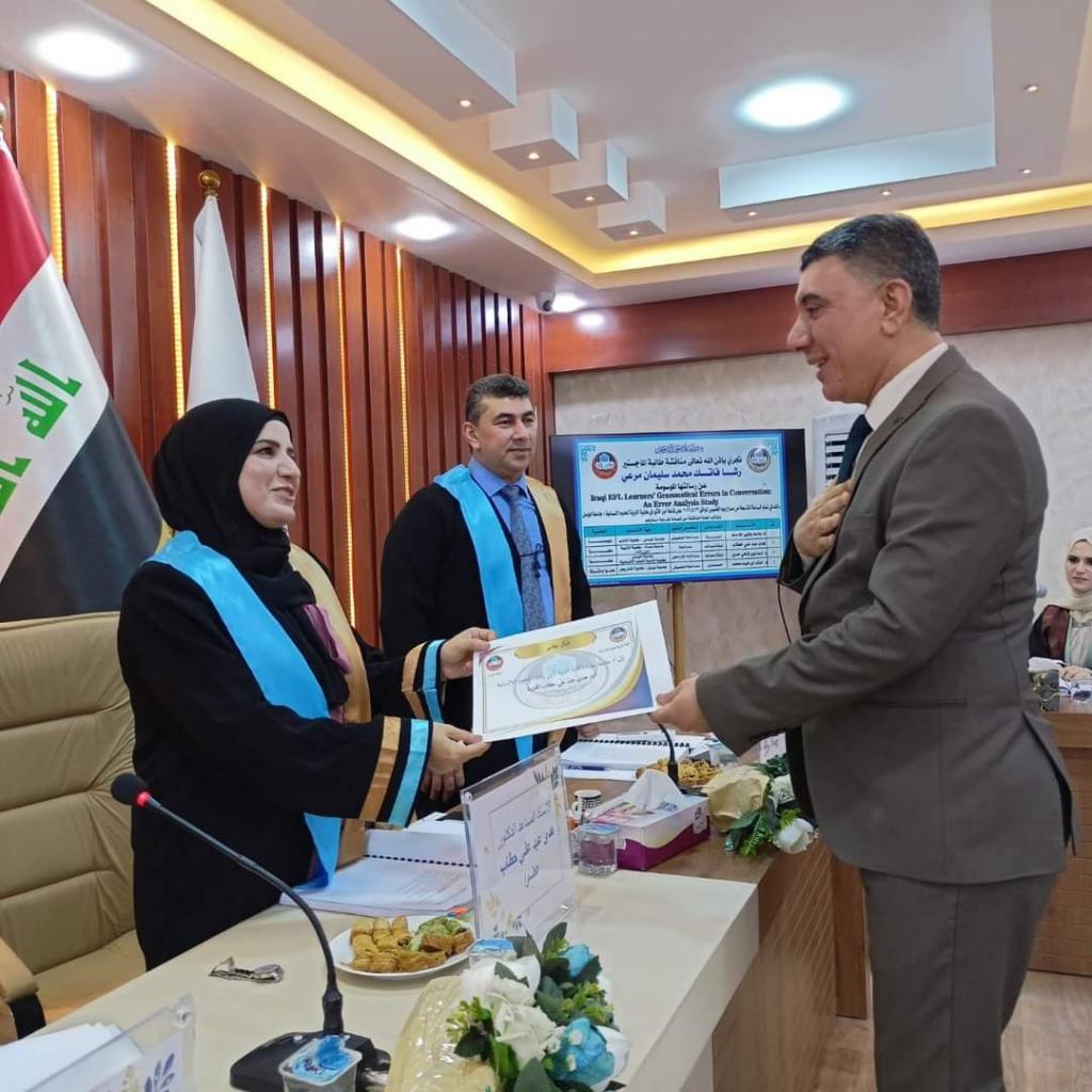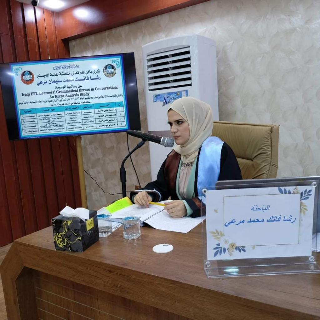 ناقش قسم اللغة الانكليزية في كلية التربية للعلوم الانسانية بجامعة الموصل رسالة ماجستير عن :-