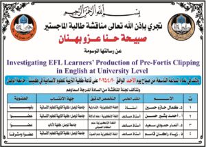 “Investigating EFL Learners’ Production of Pre-Fortis Clipping in English at University Level”