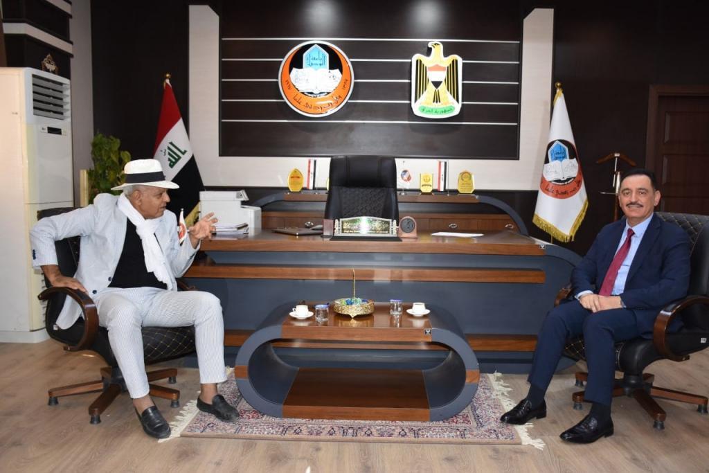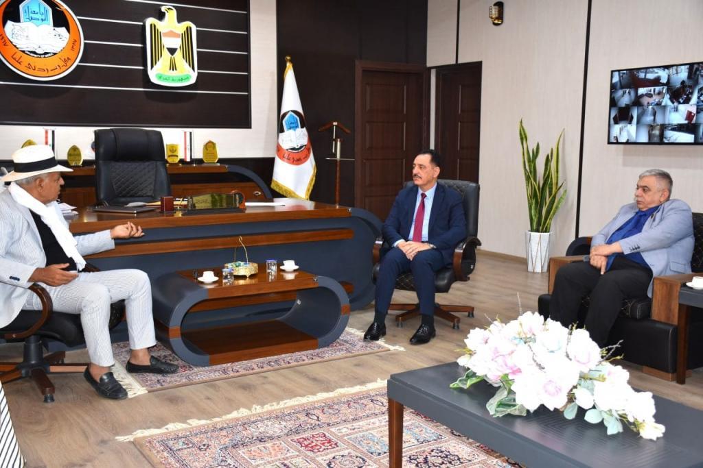 In the line of support for reconstruction of the University, Rector Kossay Alahmady received the worldly expert in designing, Prof. Rayan Abdullah, an ex-Dean of College of Design at Leipzig University, Germany.In his second visit, the Mosulli-origined expert discussed ways of scientific and research cooperation with the German universities, together with new cooperation propositions from the German Board for Cultural Exchange.