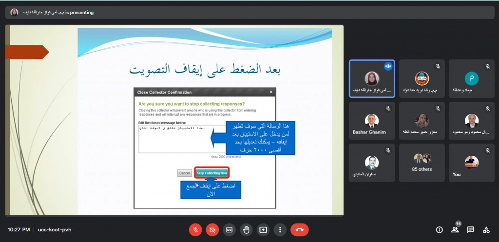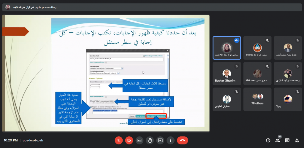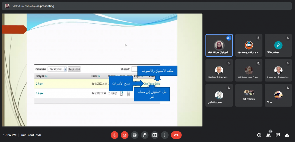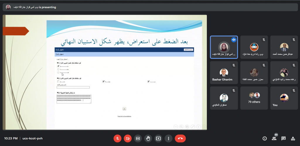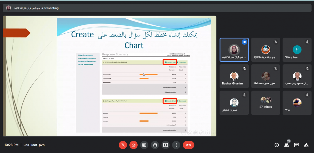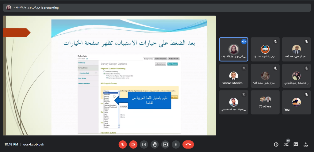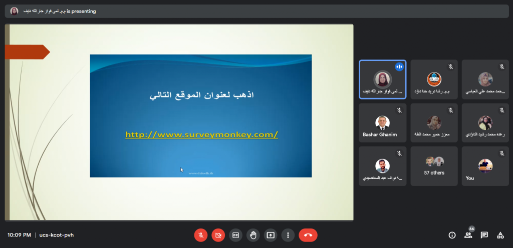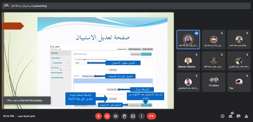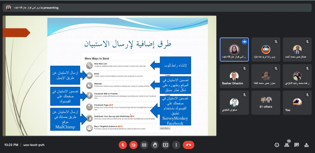 and in continuation of the activities of the electronic cultural season of the Department of Management Information Systems for the academic year 2021-2022, a lecture entitled (Preparation of electronic questionnaires) was presented by the teachers Suhair Abed Daoud, and Lama Fawaz Jarallah. The lecture included how to design an electronic questionnaire, collecting responses and forming results through SurveyMonkey, which is one of the most important global websites for developing electronic questionnaires.