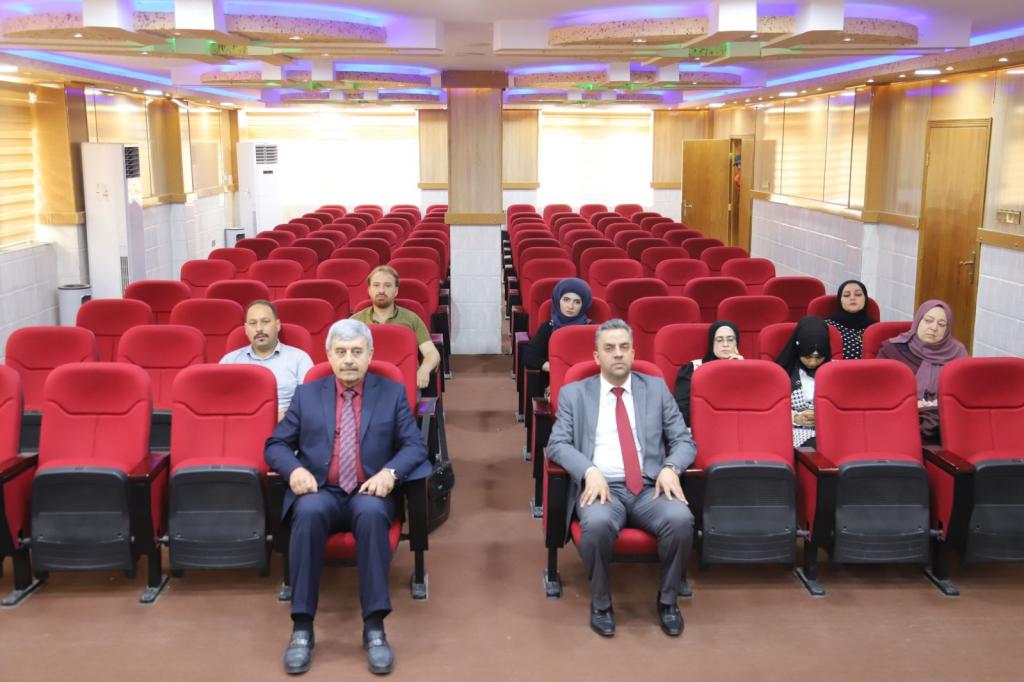 Professor Dr. “Thaier Ahmed Al-saman” (the dean) accompanied by Professor Dr. “Alla Abdulslam Alhamdany” (The associate dean for scientific affairs) attended part of the discussion session.
