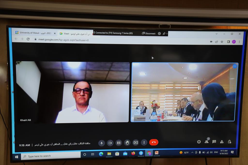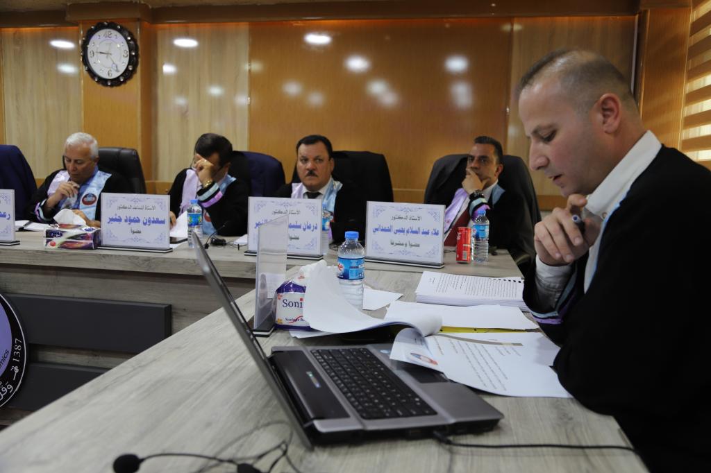 The vice chancellor of the University Professor Dr. Muneer Salim Taha”, the dean of the faculty Professor Dr. Thaier Ahmed Sadown Al-Saman and the associate dean Dr. “Ahmed Hassian Al-Jarjaery” attended part of the viva.