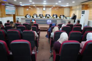 Part of the discussion was attended by the Dean of the College, Professor Thaeir Ahmed Saadoon Al-Samman.