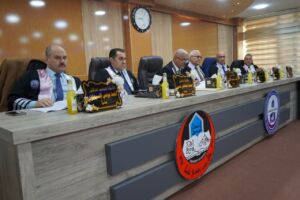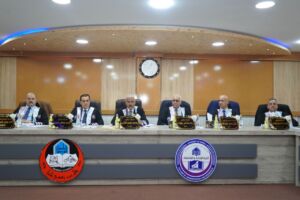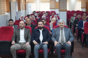 Part of the discussion was attended by the Dean of the College, Professor Thaeir Ahmed Saadoon Al-Samman.