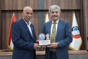In a gesture of appreciation, Major General Radhi Al-Mardasi presented honorary shields to Professor Wahid Mahmoud Al-Ibrahimi, President of the University of Mosul, and Professor Thaer Ahmed Saadoun Al-Samman, Dean of the College of Administration and Economics, expressing gratitude and appreciation for their role in the success of this meeting. The ceremony concluded with honoring the honorees from the first generation with the college’s shield, followed by a group photo to document this historic moment.