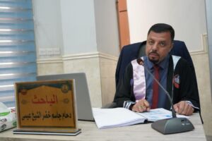 The discussion committee was headed by Professor Dr. Thaeir Mahmoud Rashid Al-Ani from the University of Baghdad, and the membership of Professor Dr. Saad Mahmoud Khalil Al-Kawaz, and Assistant Professor Dr. Abdullah Khader Abtan, under the supervision and membership of Assistant Professor Dr. Rabah Jamil Saad Al-Din.