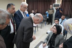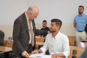 The examinations were attended in person by the President of the University of Mosul, Professor Dr. Waheed Mahmood Al-Ibrahimi, accompanied by the Vice President for Scientific Affairs, Professor Dr. Abdulrahim Ibrahim Jassim, and the Assistant Vice President for Administrative and Financial Affairs, Assistant Professor Dr. Rafel Hassan Hamed. They were received by the Dean of the College, Professor Dr. Sinan Zuhair Mohammed Jameel.