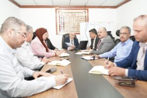 During the meeting, the mechanism for organizing the final exams for the second semester was discussed, with emphasis placed on adhering to the examination regulations issued by the Ministry of Higher Education and the university, to ensure the smooth and orderly conduct of the exam process.