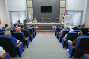 Under the patronage and follow-up of the Rehabilitation and Employment Division at the Presidency of the University of Mosul, the Rehabilitation, Employment, and Follow-Up Unit at the College of Administration and Economics, in cooperation with the High Commission for Human Rights, organized a workshop entitled “The Right to Development.” The workshop was presented by Dr. Nagham Luqman and held in Hall No. (2) at 10:30 AM.