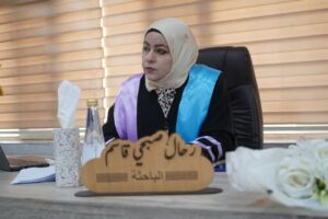 The discussion committee was chaired by Prof. Dr. Basim Hazim Hameed from the University of Baghdad, and included as members: Prof. Dr. Qais Nadhim Ghazal from the College of Agriculture and Forestry – University of Mosul, Asst. Prof. Dr. Alaa Wajih Mahdi, Asst. Prof. Dr. Ruqayya Khalaf Hamad, and Asst. Prof. Dr. Omar Hisham Sabah, with Asst. Prof. Dr. Iman Mustafa Rashad as both a member and the supervisor.