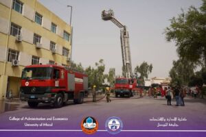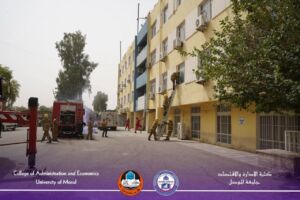 As part of ongoing cooperation between the University of Mosul and the Nineveh Civil Defense Directorate, the College of Administration and Economics conducted a field exercise on evacuation and safety procedures on the morning of Wednesday, July 2, 2025. The exercise was organized by the Civil Defense Division / Administrative Affairs Department.