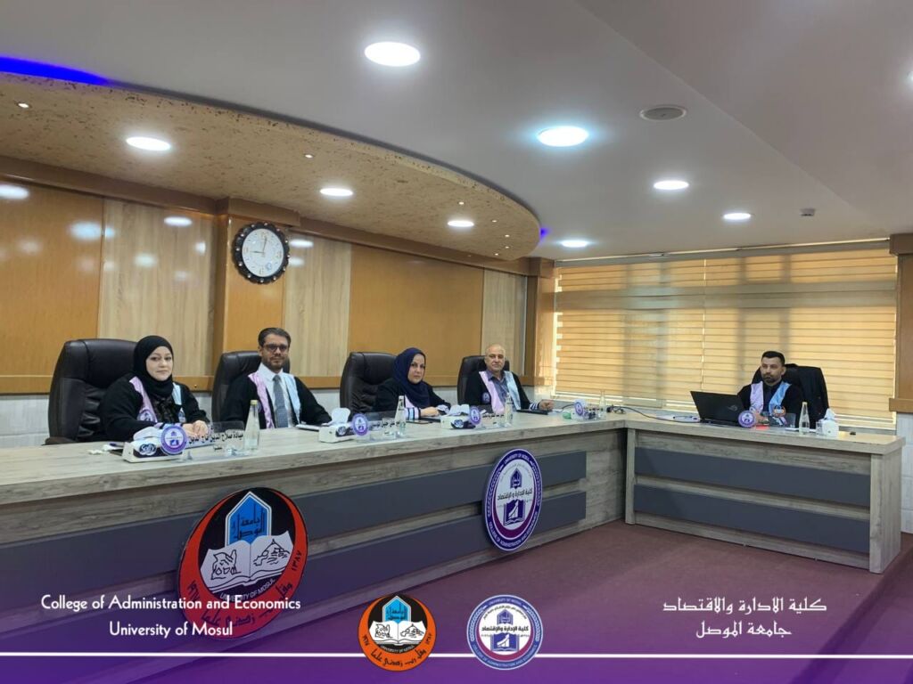 The Department of Accounting at the College of Administration and Economics – University of Mosul held a discussion session for the master’s thesis submitted by the student Dindar Saeed Khalil, entitled: