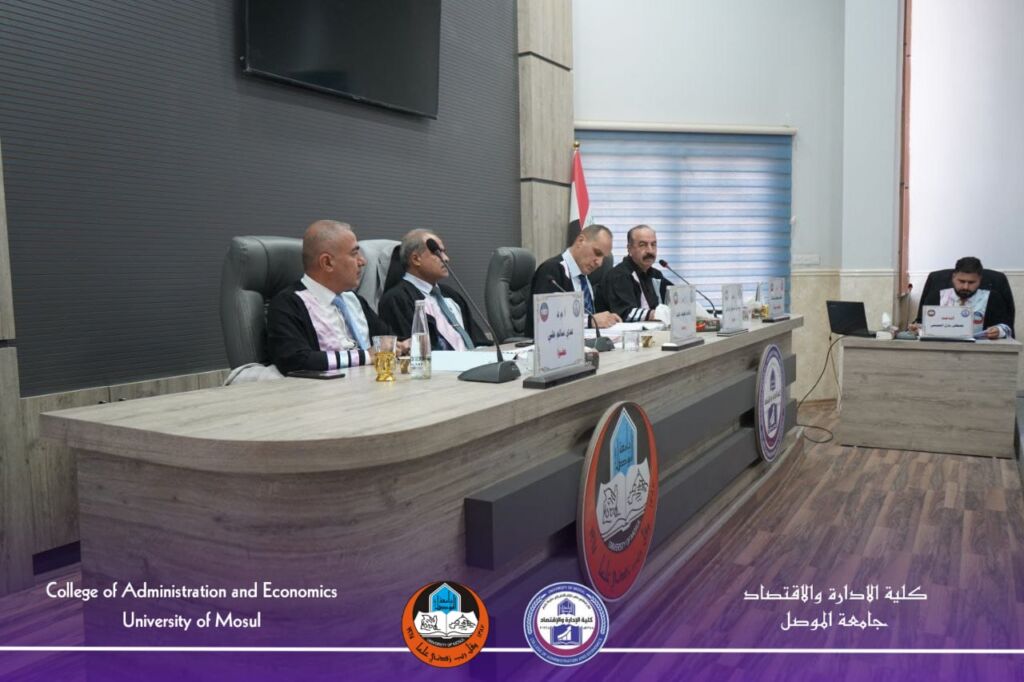 The examination committee consisted of: Asst. Prof. Dr. Raed Majid Abd – Technical Administrative College / Middle Technical University – Chair. Asst. Prof. Dr. Muthanna Faleh Badr – College of Administration and Economics / University of Mosul – Member. Asst. Prof. Dr. Salem Khalil Khalid – College of Administration and Economics / University of Mosul – Member. Asst. Prof. Dr. Khalis Hassan Yousif – College of Administration and Economics / University of Mosul – Member and Supervisor.