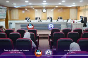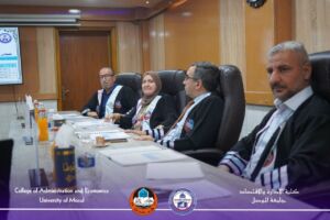 The Department of Economics at the College of Administration and Economics – University of Mosul hosted the discussion of the master’s thesis titled: “The Impact of Global Innovation Indicators on Economic Growth in Selected Countries”, submitted by the student Hiba Ahmed Aref Al-Shahwani.