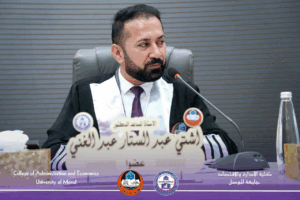 On Tuesday, August 26, 2025, Discussion Hall No. (2) at the College of Administration and Economics, University of Mosul, hosted the defense of the master’s thesis submitted by Abdulmunim Ali Shabaan Ali Al-Jubouri from the Department of Finance and Banking Sciences, entitled: