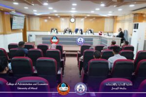 The discussion hall at the College of Administration and Economics – University of Mosul hosted the defense of the master’s thesis submitted by Riyadh Mohammed Younis Shahir Al-Shahir, titled: “Marketing Control and Proactive Marketing and Their Role in Enhancing Sustainable Competitive Advantage: A Field Study in a Selected Group of Private Hospitals in the City of Mosul,” on Thursday, August 28, 2025.