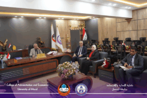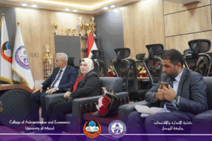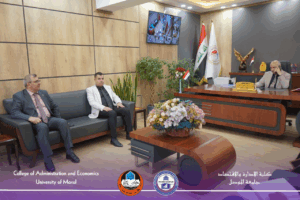 On Wednesday morning, August 27, 2025, the College of Administration and Economics – University of Mosul welcomed the President of the University, Professor Dr. Waheed Mahmoud Al-Ibrahimi, accompanied by the University’s Vice President for Scientific Affairs, Professor Dr. Abdulrahim Ibrahim Jassim, and the Vice President for Administrative and Financial Affairs, Assistant Professor Dr. Rafal Hassan Hamed. They were received by the Dean of the College, Professor Dr. Sinan Zuhair Mohammed Jameel, along with the Associate Dean for Scientific Affairs, Assistant Professor Dr. Salem Khalil Khalid.