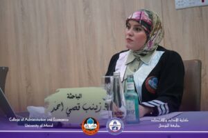 The Department of Industrial Management at the College of Administration and Economics – University of Mosul, on Sunday, September 7, 2025, held a master’s thesis defense in the discussion hall of the Department of Finance and Banking for the student Zainab Qusay Ahmed, titled: