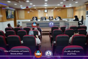 The discussion hall No. (1) at the College of Administration and Economics, University of Mosul, witnessed on Wednesday, September 10, 2025, the defense of a high diploma thesis (equivalent to a master’s degree) submitted by the student Dalia Hazem Hassan Al-Taie from the Department of Business Administration, entitled: “The Role of Administrative Transparency in Enhancing Organizational Development: An Exploratory Study of the Opinions of a Sample of Employees in Nineveh Provincial Council.”