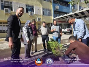 Under the patronage of the President of the University of Mosul, Prof. Dr. Wahid Mahmoud Al-Ibrahimi, and supervised by the Dean of the College of Administration and Economics, Prof. Dr. Sinan Zuhair Mohammed Jamil, the Sustainable Development Unit at the college organized on Monday, October 13, 2025, a prominent environmental campaign titled “Trees of Mercy,” which involved planting a number of trees and flowers across the college, with the participation of a group of its faculty members and students.The campaign was carried out in the presence of the Sustainable Development Liaison at the college, Assistant Professor Dr. Amal Sarhan Suleiman, aiming to raise environmental awareness and reinforce the concept of sustainable development as part of the college’s social responsibility, and its continuous effort to create a green, vibrant, and productive university environment.