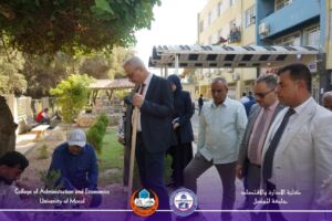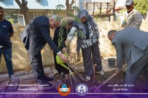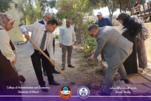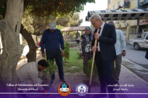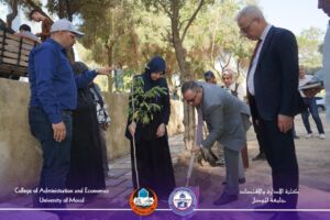 In line with the University of Mosul’s vision to promote the principles of sustainable development and achieve a green university environment, and under the directives of Prof. Dr. Waheed Mahmoud Al-Ibrahimi, President of the University, and the direct supervision of Prof. Dr. Sinan Zuhair Mohammed Jameel, Dean of the College of Administration and Economics, the first phase of the college’s garden tree-planting campaign was launched on Wednesday, November 5, 2025, as part of the “Seeds of Mercy” initiative introduced by the University President.