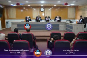 The Department of Industrial Management at the College of Administration and Economics, University of Mosul, held on Wednesday, November 26, 2025 discussion session in Discussion Hall No. (1) for the higher diploma thesis titled: “The Role of Selected Sustainable Management Strategies in Reducing the Carbon Footprint.”