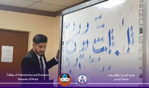 Under the supervision of the Dean of the College of Administration and Economics at the University of Mosul, Prof. Dr. Sinan Zuhair Mohammed Jameel, and within the framework of enhancing joint artistic cooperation among the university’s colleges, the Student Activities Division (Art Unit) at the College of Administration and Economics organized its first artistic course in cooperation with the College of Fine Arts at the University of Mosul, entitled “Learning Arabic Calligraphy and Ornamentation.”