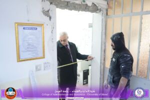 The Dean of the College of Administration and Economics at the University of Mosul, Prof. Dr. Sinan Zuhair Mohammed Jameel, conducted on Thursday morning, 22 January 2026 an on-site inspection tour covering several facilities of the college, accompanied by the Head of the Administrative Services Division.