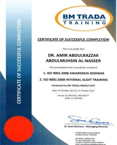 Got Dr. Amer Abdul Razak Abdul Mohsen Nasser / official Division Quality Assurance and university performance in our college degree internal auditor for quality systems of organization (BM-TRADA) British light configuration for the application of [Read More]