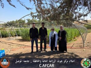 In the framework of following up on research activities implemented for summer crops, the staff of the Center for Arid Farming and Conservation Agriculture Research’s at the University of Mosul today, October 1, 2025, initiated intensive control measures for diseases and insects diagnosed in cotton and sesame crops. This proactive step aims to protect the vital research experiments implemented in the center’s greenhouses, which are considered a basis for developing sustainable agriculture in the region.