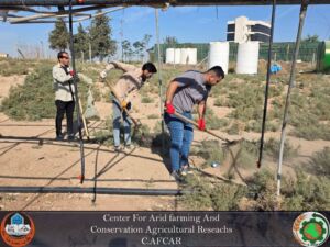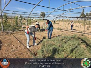 A specialized team of agricultural engineers at Center for Arid Farming and Conservation Agriculture Researches commenced work on Monday, November 3, 2025, to clear weeds and prepare the plastic greenhouses (poly-tunnels). This work is part of the ongoing preparations for planting a new collection of research plants.