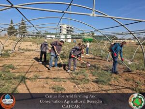Specialized Team at Center for Arid Farming and Conservation Agriculture Researches Prepares Greenhouses for Research Planting in Support of SDGs.